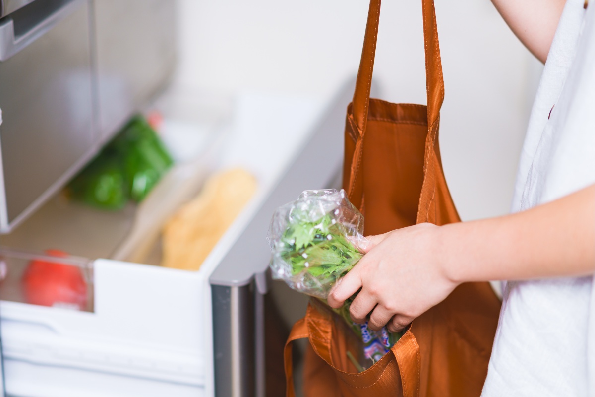 エコバッグの内側を清潔に保つためには、食品や液体を直接入れず、ポリ袋を併用することが効果的。肉や野菜のドリップ漏れや惣菜などの油分が布地に染み込むと、洗っても落ちにくい汚れや臭いが残りやすいためです。