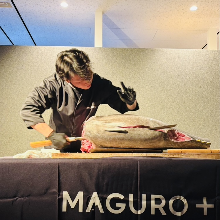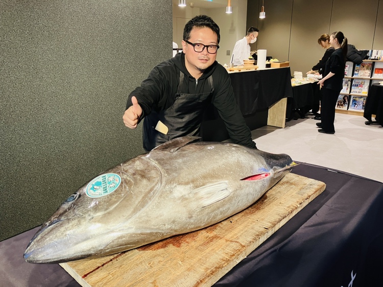 マグロ一匹と橋本社長。45周年を祝う象徴として、圧巻の存在感を放ちました。