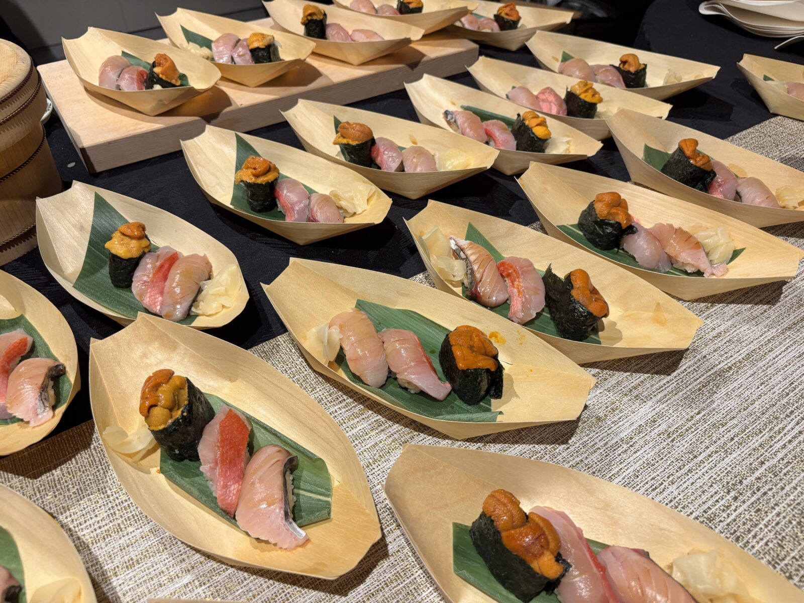 会場では、豊洲市場から仕入れた本マグロ一本を使った、寿司職人による解体ショーを実施。運び込まれた瞬間、会場には自然と歓声が上がり、社員同士が写真を撮り合い、笑顔と会話が生まれました。“同じ体験をみんなで楽しむ”、まさにユニファーストらしい一体感に包まれた時間となりました。その後に振る舞われた握りたての寿司も大好評で、会場は和やかな笑顔であふれました。