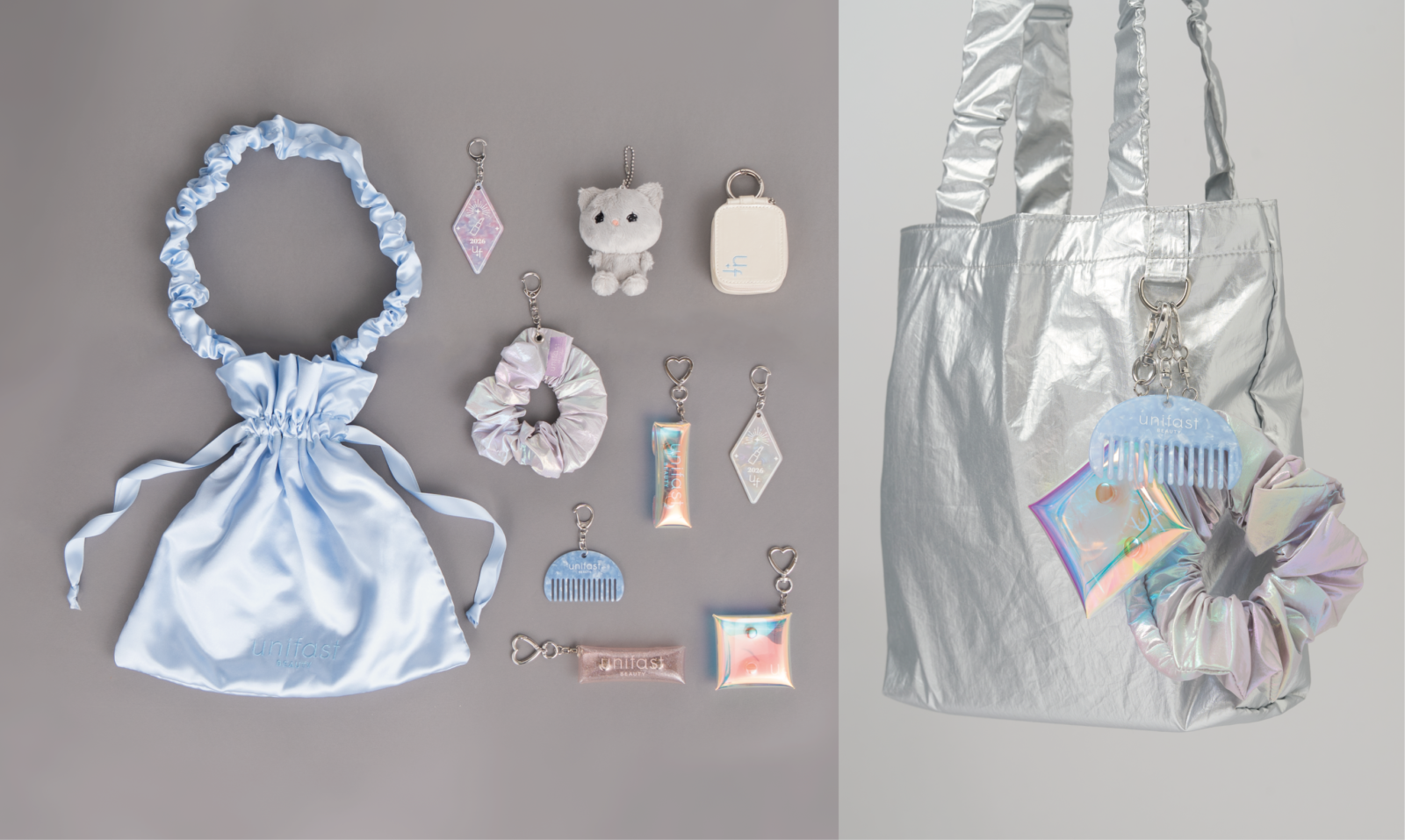 出展アイテムは、アパレル分野から着想を得た素材感や形状を取り入れたバッグ類を中心に、ノベルティとしても採用しやすい小物雑貨をラインナップ。バッグに付けてデコレーションを楽しめるよう、小型のぬいぐるみやキーホルダー、PVC素材のポーチ、リップケースなど、アパレルと親和性の高いアイテムを組み合わせて提案しています。バッグを強みとするユニファーストならではの視点を活かした構成です。